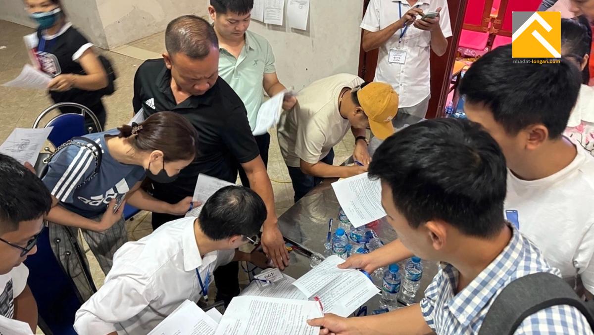 Nhà đầu tư tham gia cuộc đấu giá đất tại huyện Hoài Đức cũ vào tháng 8/2024.